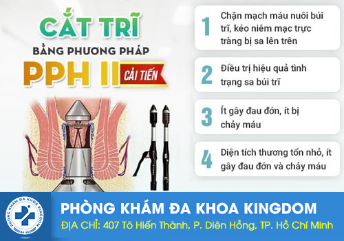 PPH là một phương pháp điều trị trĩ hiện đại, thường được áp dụng cho những bệnh nhân bị trĩ sa nặng. Kỹ thuật này khâu treo búi trĩ trở lại vị trí ban đầu và loại bỏ một phần niêm mạc trực tràng dư thừa giúp ngăn ngừa trĩ tái phát.