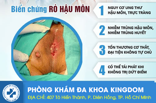 Được cấp giấy phép hoạt động trong điều trị những bệnh lí hậu môn - trực tràng, trong nhiều năm qua, Phòng Khám Đa Khoa KingDom (407 Đ. Tô Hiến Thành, Phường Diên Hồng, Hồ Chí Minh) đã hỗ trợ điều trị thành công cho rất nhiều bệnh nhân bị rò hậu môn. Bên cạnh việc không ngừng nâng cao, tìm tòi, áp dụng thêm những kĩ thuật mới trong khám chữa trị, phòng khám đã trở thành một cơ sở uy tín, chất lượng được đông đảo bệnh nhân đến đây thăm khám.